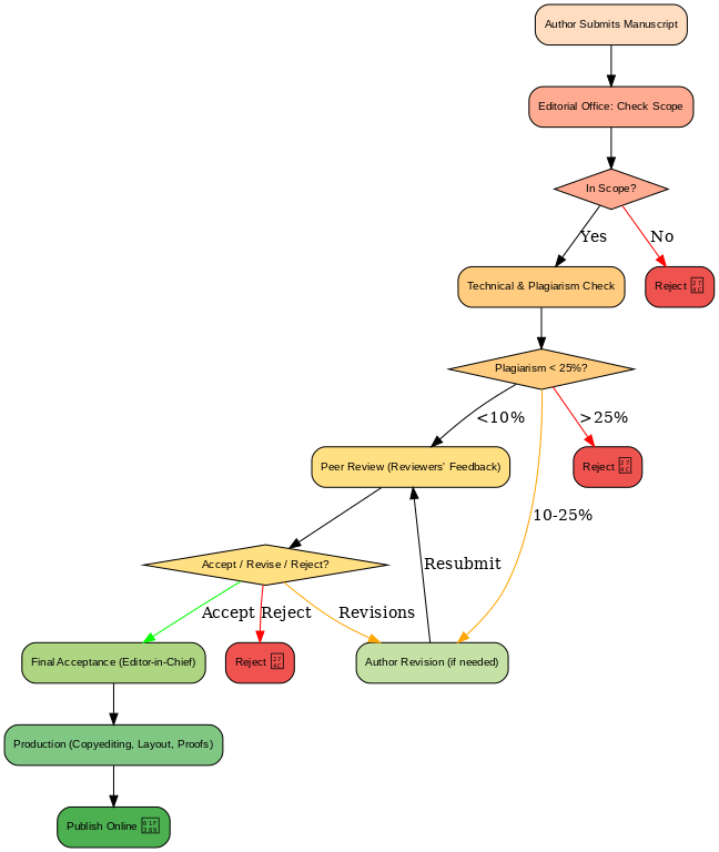 • Author Submits Manuscript: The process begins when the author submits their manuscript to the journal.